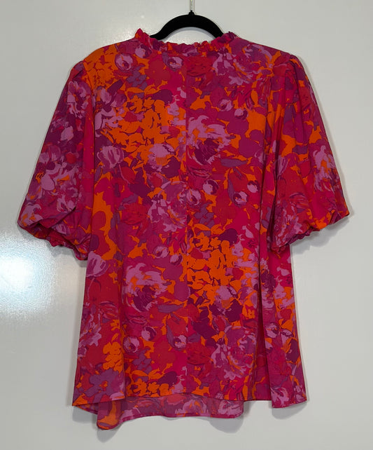 Flirty Floral Split Neck Orange/Pink Top - Curvy