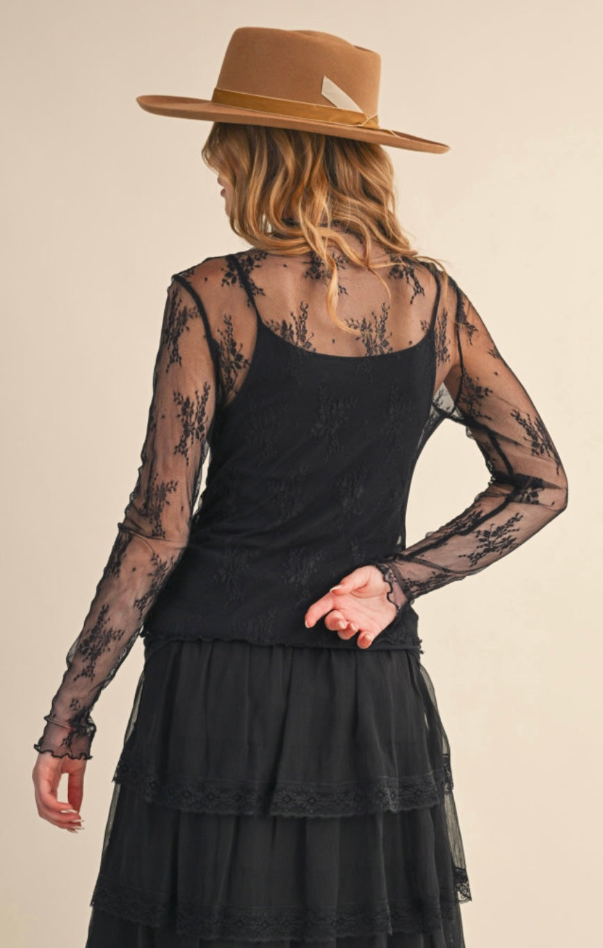 A whisper of romance and a hint of daring—Laced in Grace brings timeless femininity to the modern muse. Sheer floral lace, a figure-flattering fit, and elegant long sleeves make this top a showstopper from every angle. Slip it over a cami or bralette and let your confidence shine through. *cami and bralette not included